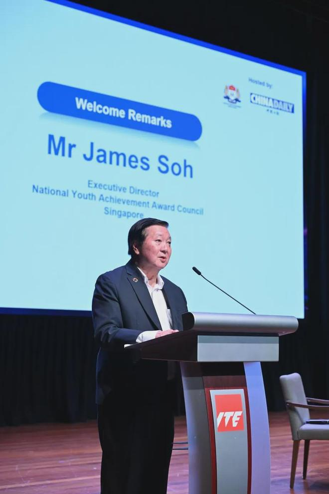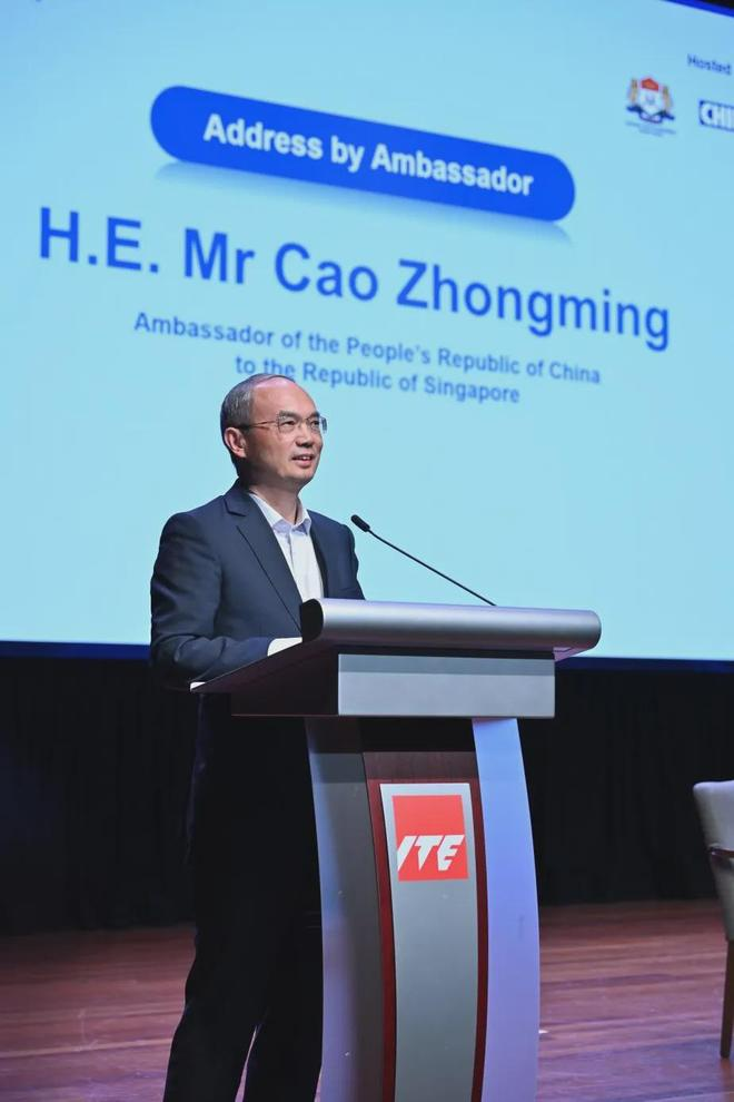 中国驻新加坡大使曹忠明在致辞中表示,中新友好交往源远流长,“高质量”是中新合作最鲜明的标识。他鼓励青年朋友直面挑战,抓住机遇,积极参与和推动中国的高质量发展、新质生产力的进步和中新高质量合作,为时代贡献青春智慧。