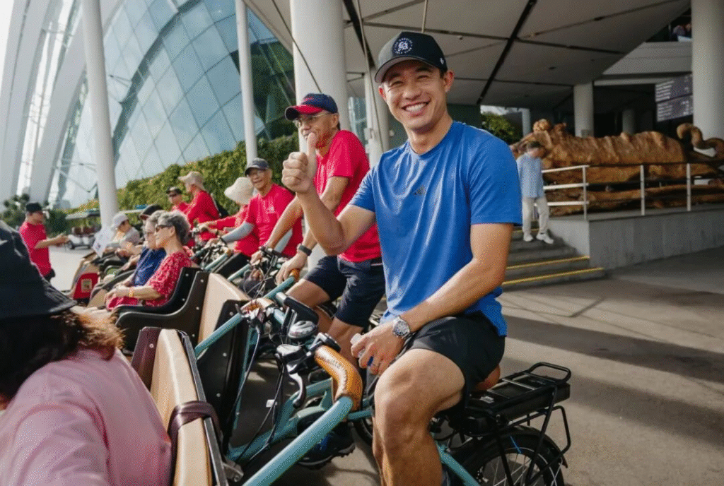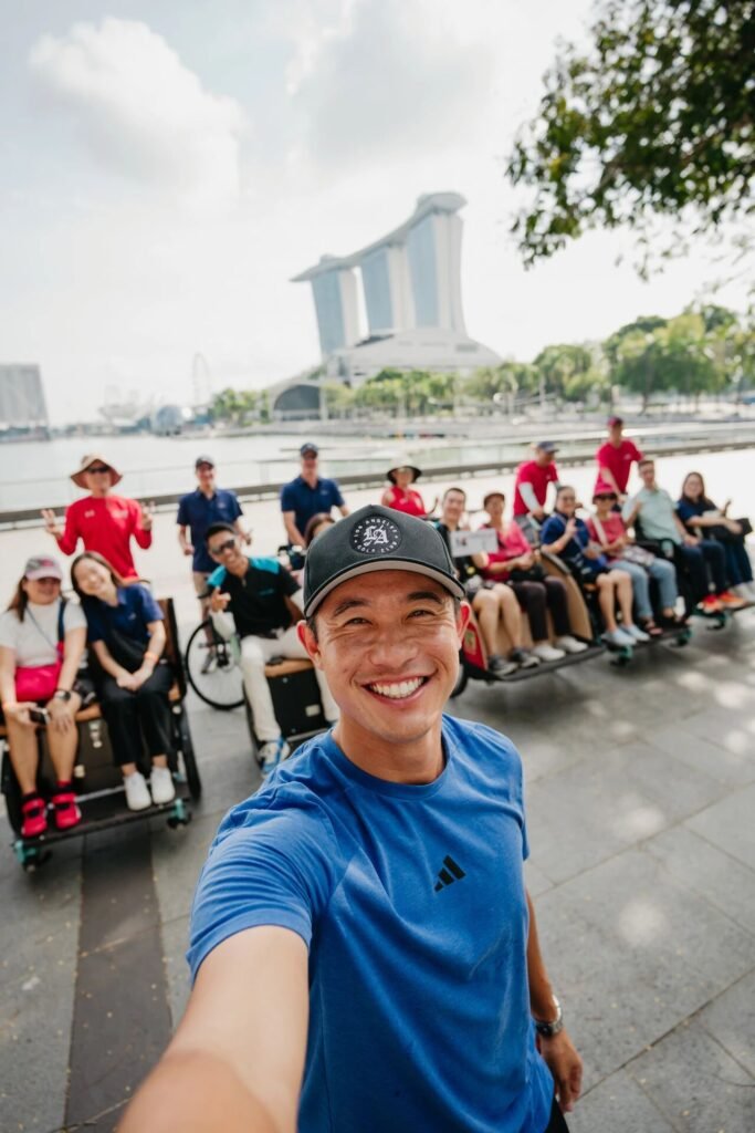 森川一天的活动始于与滨海湾金沙的社区参与计划“Sands Cares”的一次有意义的活动。他带着老年人乘坐三轮车游览了滨海湾。这次早晨的骑行是由非营利组织“Cycling Without Age Singapore”促成的,该组织旨在通过在新加坡进行三轮车骑行,为独居老人带来欢乐。活动从滨海湾花园的花穹(Flower Dome)开始。森川与21名滨海湾金沙团队成员一起,在风景优美的滨海湾Waterfront Promenade和The Promontory区域为一项有意义的事业而骑行。