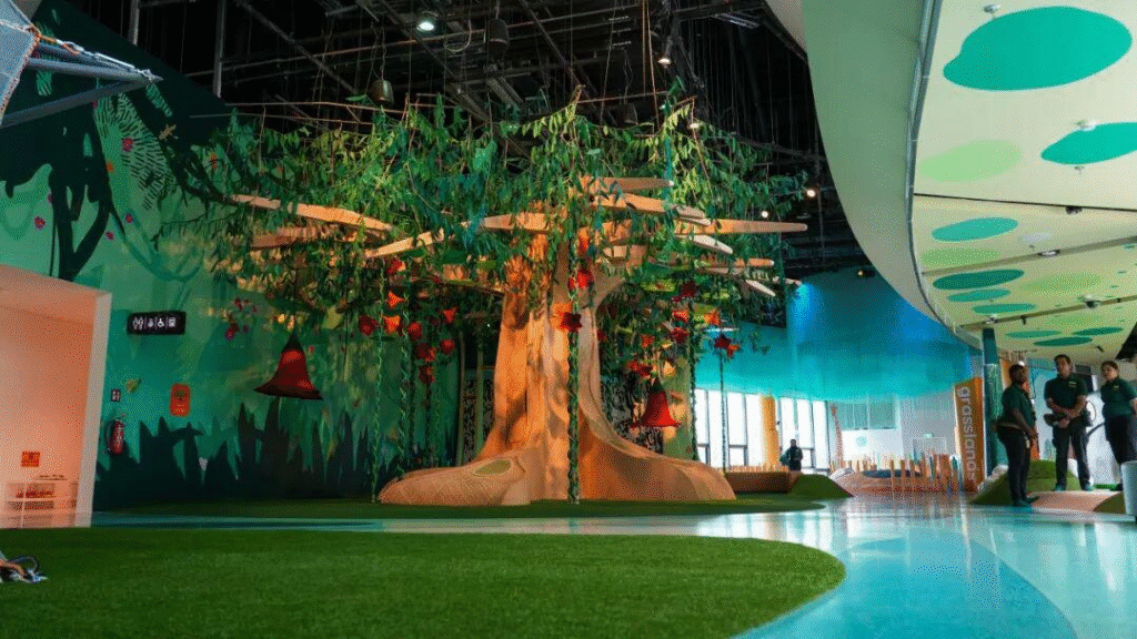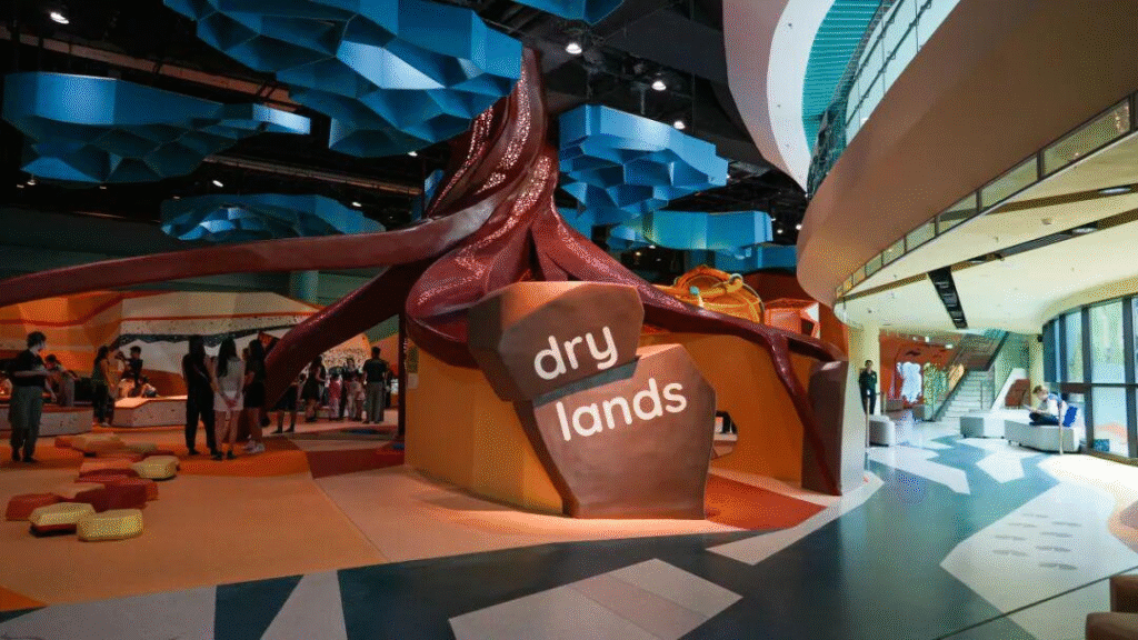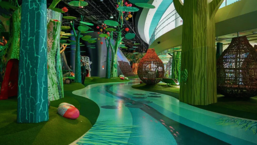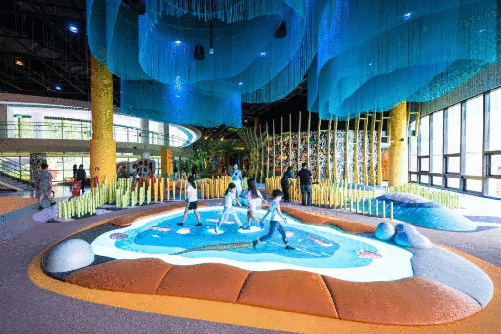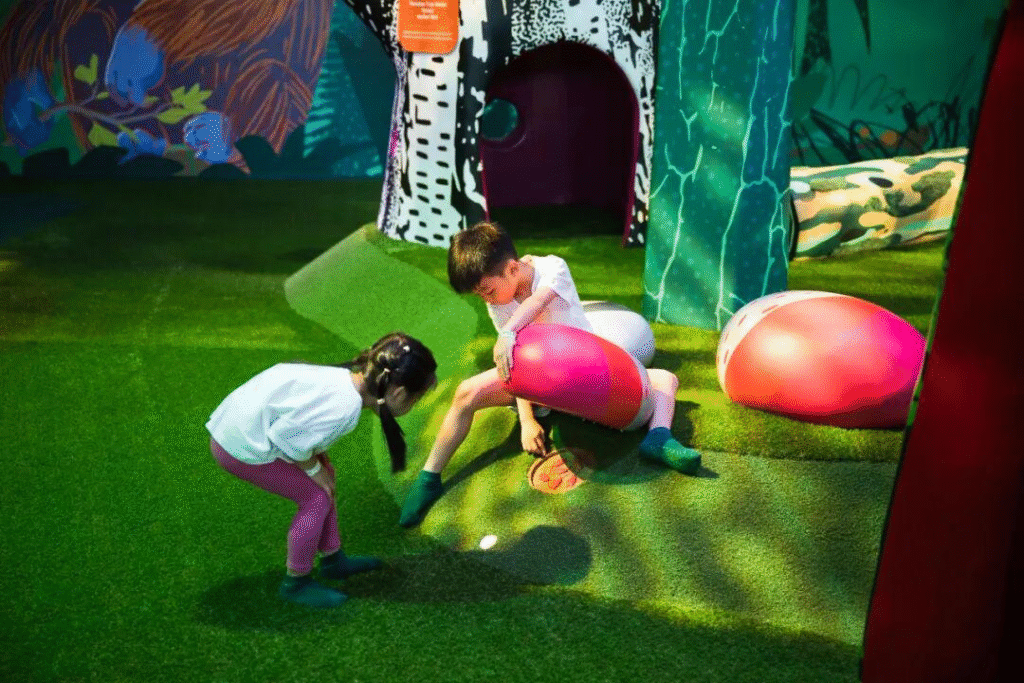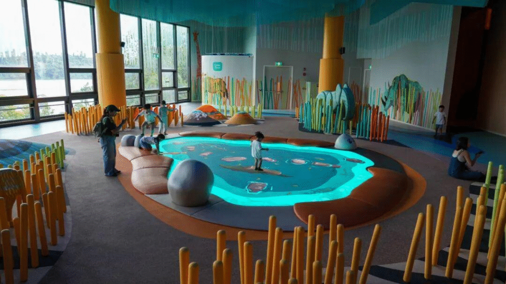 让孩子认识水如何连接生态系统、滋养万物。湿地区域贯穿整个好奇心之湾,孩子们可沿着河岸的动物脚印探险,或潜入珊瑚礁中,与海洋生物“相遇”。