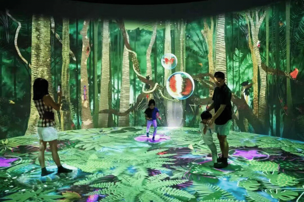 “好奇心之湾旨在激发孩子与生俱来的好奇心,让他们以充满惊喜和启发的方式认识自然。这个沉浸式体验通过互动游戏装置与虚实结合(Phygital)的创新手法,让孩子探索野生动物与生态系统。每一道光影、声音和数字反应,都会鼓励他们以自己的节奏去探索,从中建立信心与同理心。