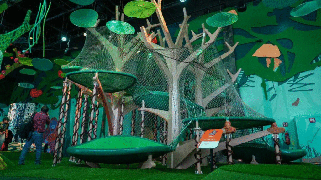 孩子们可在好奇心之湾中自由探索,穿梭于以真实生态系统为灵感的四大互动主题区: