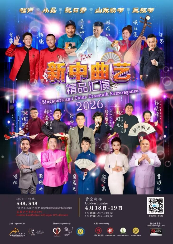 由智慧文创及中国曲艺家协会联合主办的<新中曲艺精品汇演>即将于4月18日、19日在黄金剧场上演。演出汇聚了来自中国广播艺术团说唱团、山东青岛市曲艺家协会和南阳市说唱团的12位曲艺名家新秀。他们将携手闲愉茶馆、菜鸟相声社和榴莲喜剧等本地相声、脱口秀团体的优秀青年演员,联袂为狮城观众呈献两场欢乐爆笑的相声盛宴,以幽默的语言、炸裂的段子,接地气的内容,生动展现中国和新加坡相声和两地多元丰富的曲艺文化。