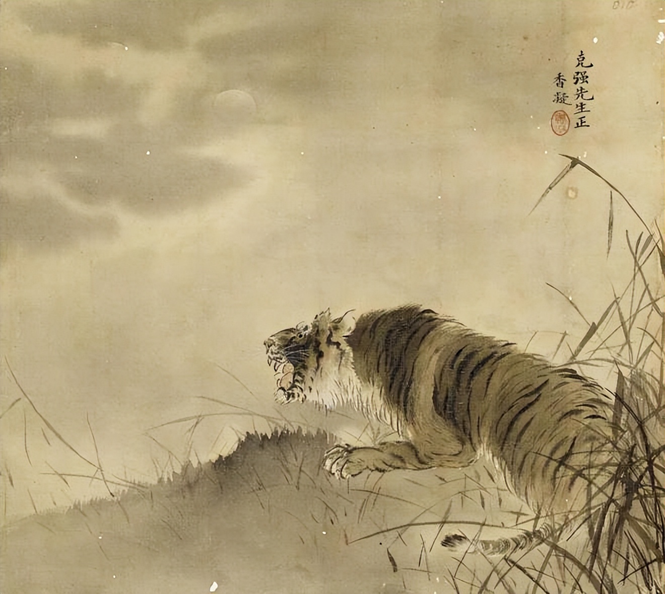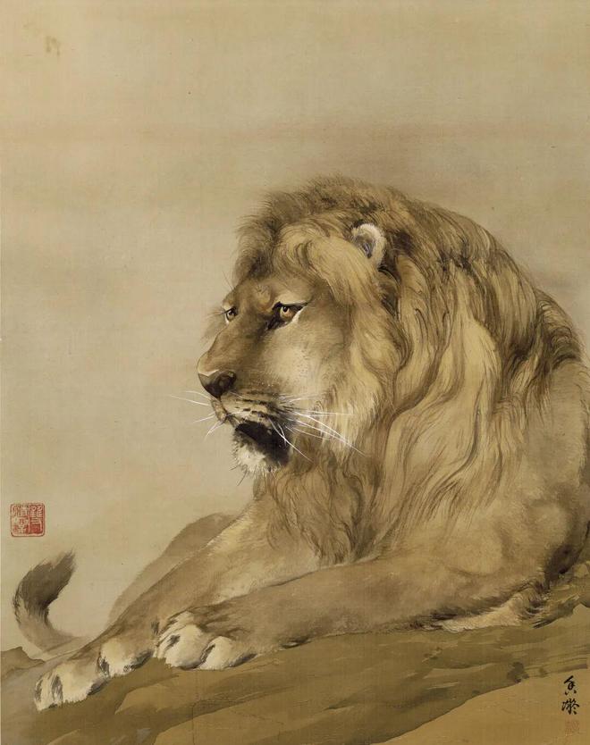 △左图:何香凝,《狮》,1914年。设色绢本,63×49厘米。何香凝美术馆馆藏。右图:何香凝,《虎》,1910年。设色绢本,26×30厘米。何香凝美术馆馆藏。