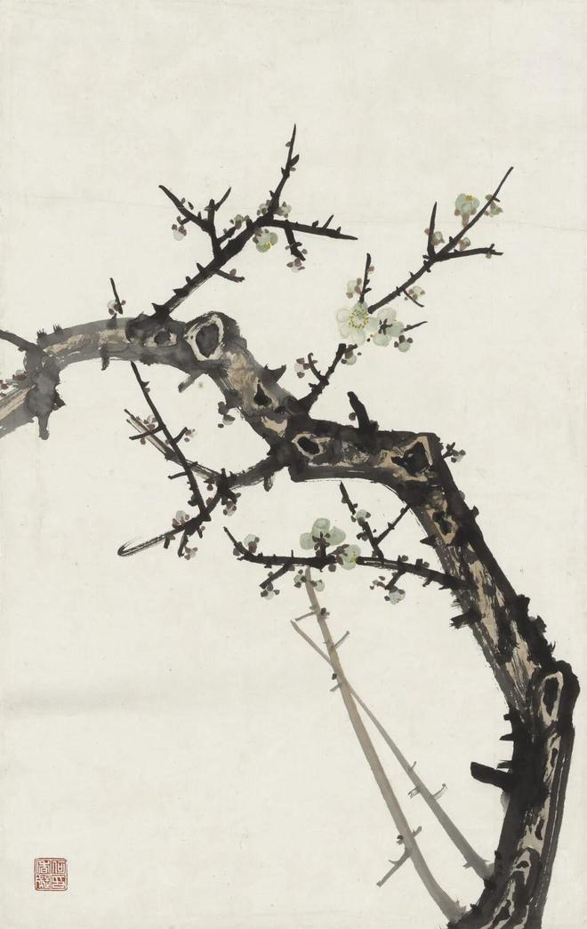 △何香凝,《绿梅》,1943年。设色纸本,57×36厘米。何香凝美术馆馆藏。