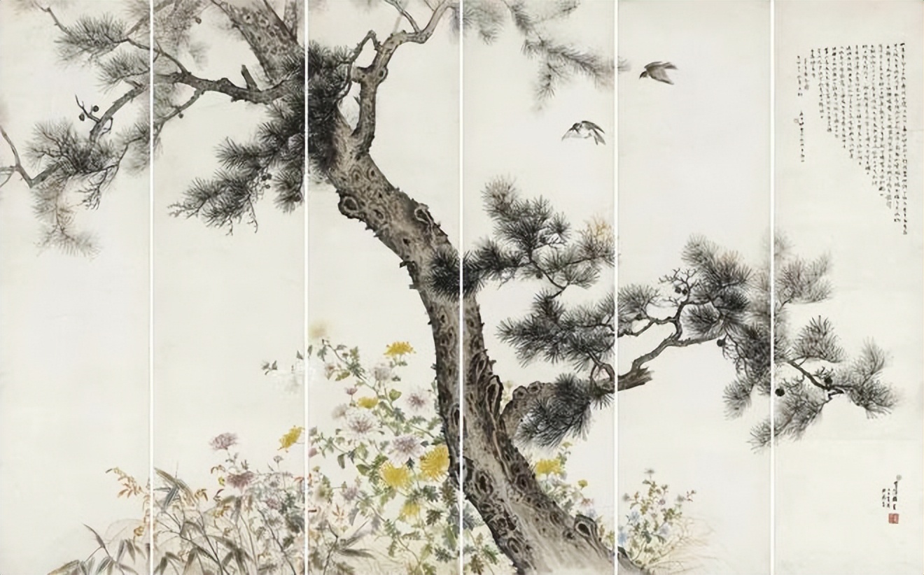 △何香凝,《松·菊》,1931年。设色纸本,173×273厘米。何香凝美术馆馆藏。